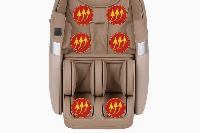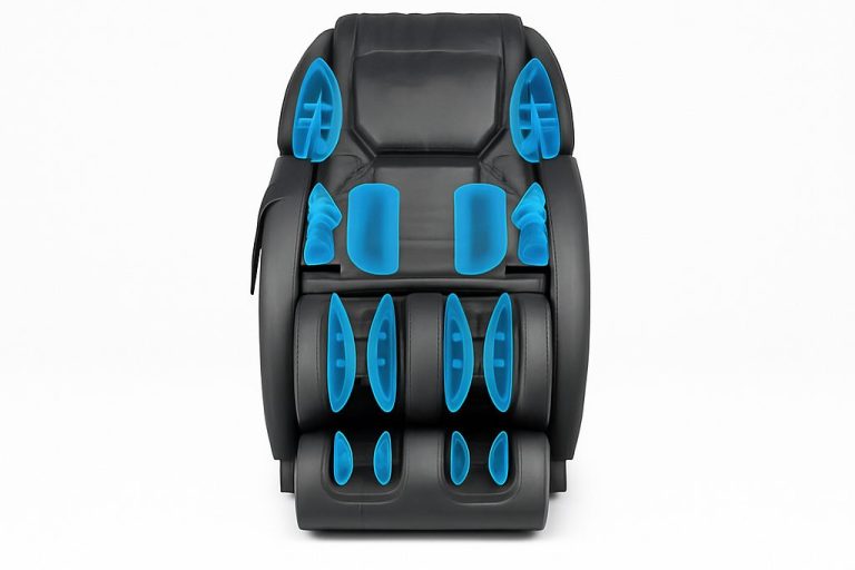 - Durch die Kombination von Rollen-, Knet- und Luftdruckmassage wird der gesamte Körper gleichzeitig behandelt – von den Schultern bis zu den Füßen