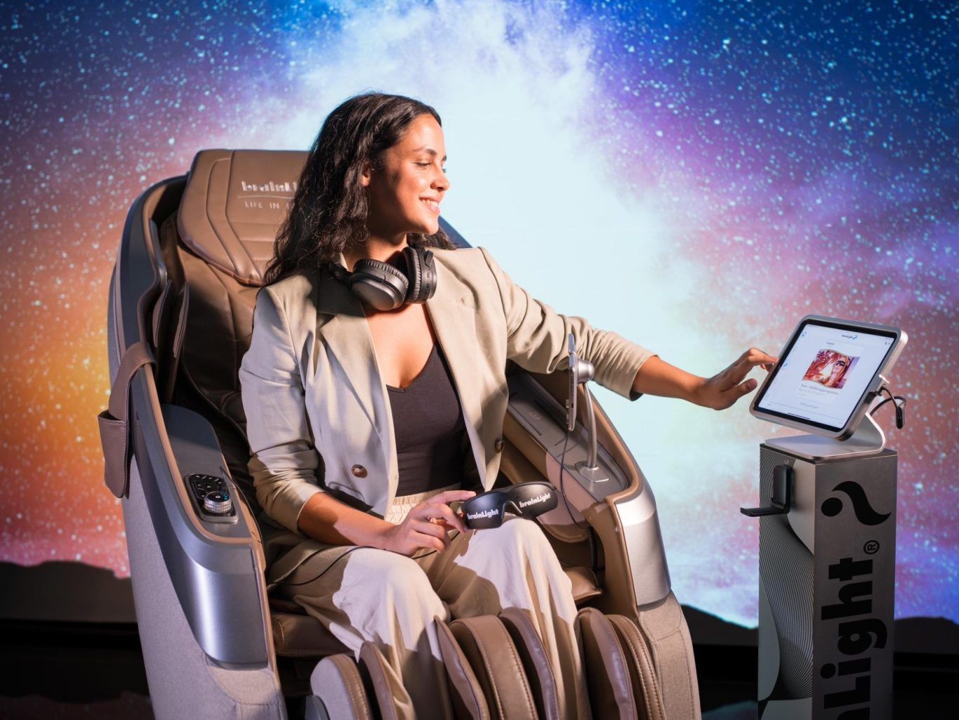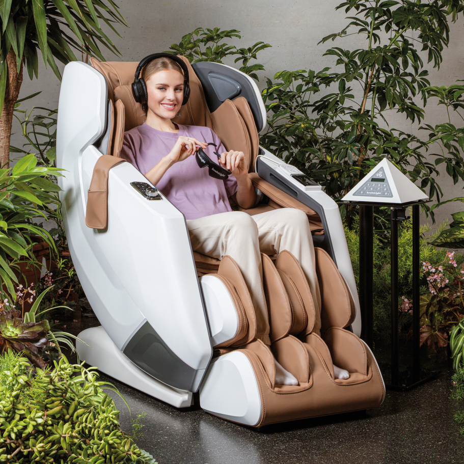 Lehnen Sie sich zurück – brainLight übernimmt. Präzise Druckpunkte, wohltuende Wärme und fließende Bewegungen lösen Verspannungen, beruhigen das Nervensystem und fördern den Stressabbau. BrainLight kombiniert modernste Massagetechnologie mit einem wissenschaftlich fundierten Licht- und Audiosystem. Weltweit einzigartig und wissenschaftlich belegt.