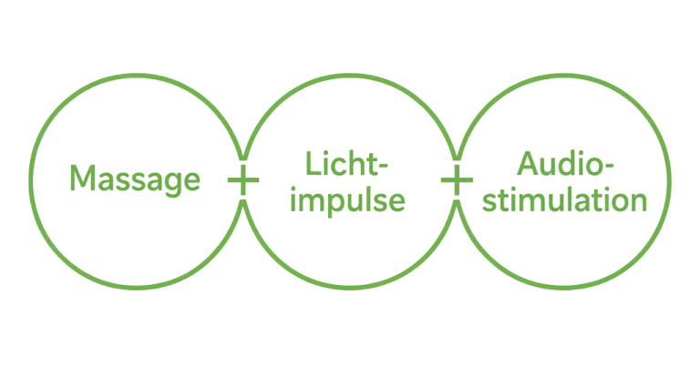 - Massage in Kombination mit Licht- und Audioimpulsen.